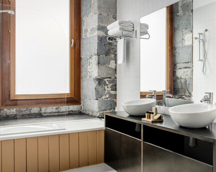 Escoge nuestras habitaciones dobles superiores si quieres un extra de comodidad en tus vacaciones en Orduña. Una de nuestras habitaciones dobles superiores está adaptada a personas con movilidad reducida. Para una estancia con un extra de comodidad. Las chimeneas son decorativas, no funcionan.
