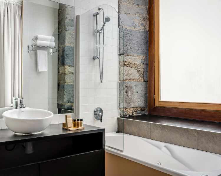 Todas nuestras habitaciones ofrecen baño con secador de pelo, bañera de hidromasaje o plato de ducha, caja de seguridad, conexión a Internet, televisión vía satélite, minibar, amenities, llave electrónica/magnética, teléfono y ventanas articuladas.